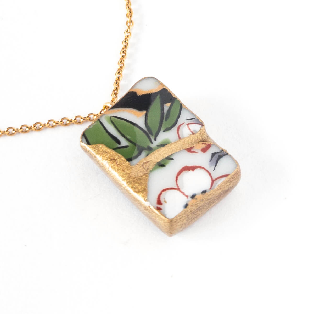 Ware necklaces are perfect, which are crafted from a single piece of broken pottery restored to its original shape. This style is often what people think of when they hear "Kintsugi" in the traditional sense. You can find these by searching "Ware."
